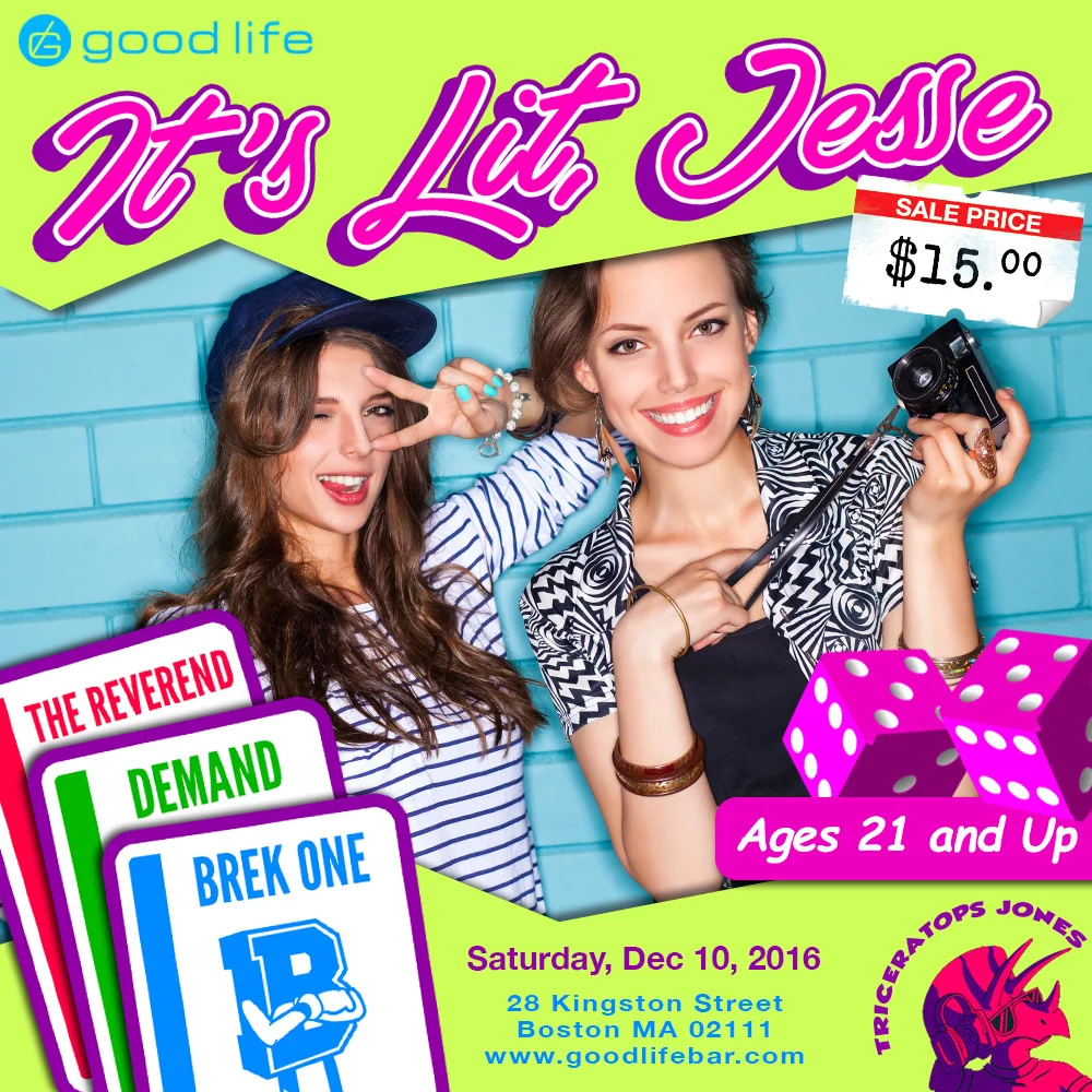 IT’S LIT JESSE!!! Saturday, December 10, 2016 9:30 PM 11:59 PM 21:30 23:59 Google Calendar ICS DJs: Demand, The Reverend + Brek.One (downstairs)Music: Top 40, Reggae, Trap, Hip Hop & Party JamsEnds at 2am View fullsize