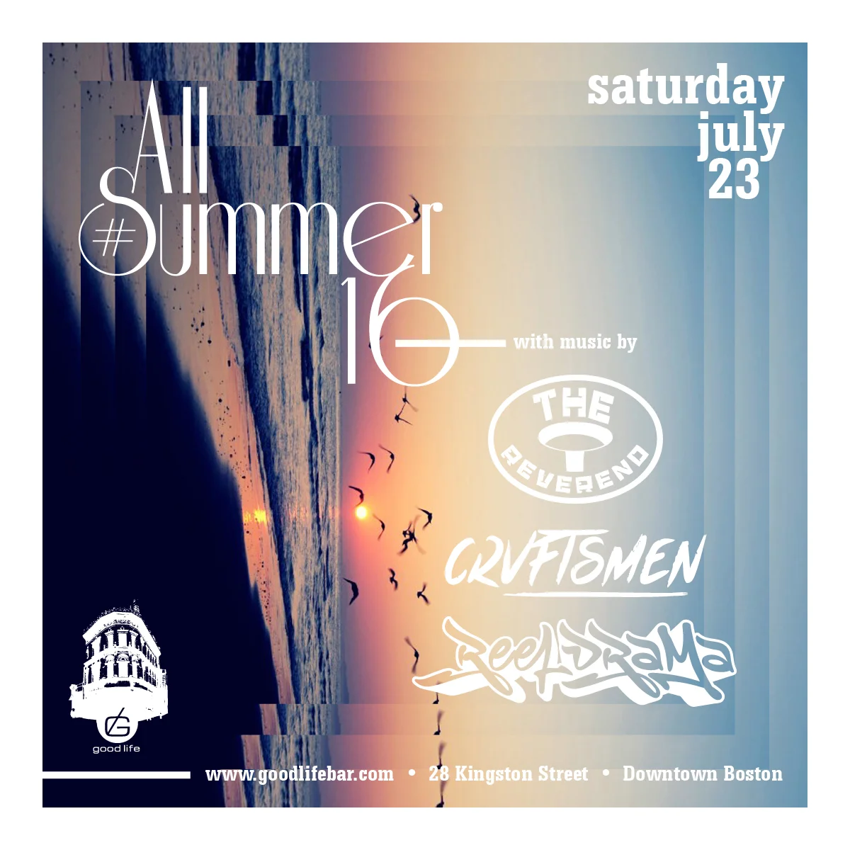 #AllSummer16 Saturday, July 23, 2016 9:30β―PM 11:59β―PM 21:30 23:59 Google Calendar ICS DJs: The Reverend, Drama, CraftsmenEnds at 2am View fullsize